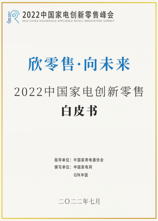 近日,由中國(guó)家用電器協(xié)會(huì)指導(dǎo)、中國(guó)家電網(wǎng)和GfK中國(guó)聯(lián)合撰寫的《欣零售·向未來(lái)——2022年中國(guó)家電創(chuàng)新零售白皮書》(以下簡(jiǎn)稱《白皮書》)正式發(fā)布。《白皮書》全面梳理了我國(guó)創(chuàng)新零售發(fā)展現(xiàn)狀,幫助行業(yè)總覽市場(chǎng)發(fā)展趨勢(shì)、洞察新興消費(fèi)者需求、把握行業(yè)突破口,為企業(yè)找準(zhǔn)戰(zhàn)略發(fā)展方向、加快推進(jìn)生態(tài)創(chuàng)新、率先實(shí)現(xiàn)數(shù)字化轉(zhuǎn)型提供深度參考。